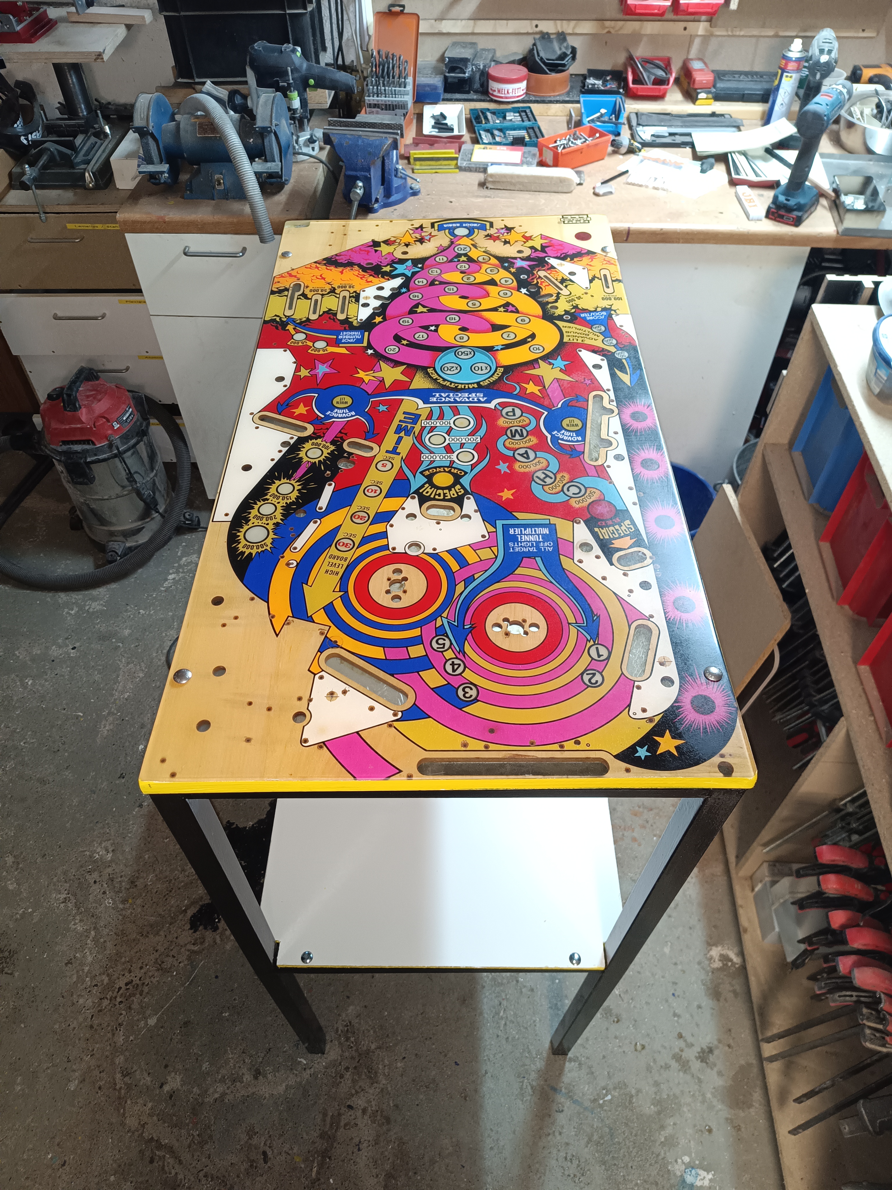 Und da ist es, das Folgeprojekt des Couchtisches. Ist zwar schon fast 10 Jahre her, dass ich den Tisch zerlegt und das Pinball Champ Playfield eingelagert habe, aber Gut Ding will halt Weile haben :-)